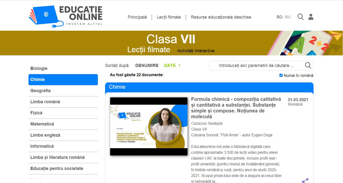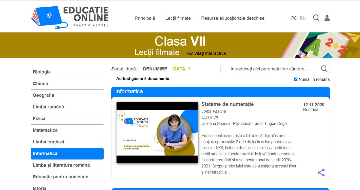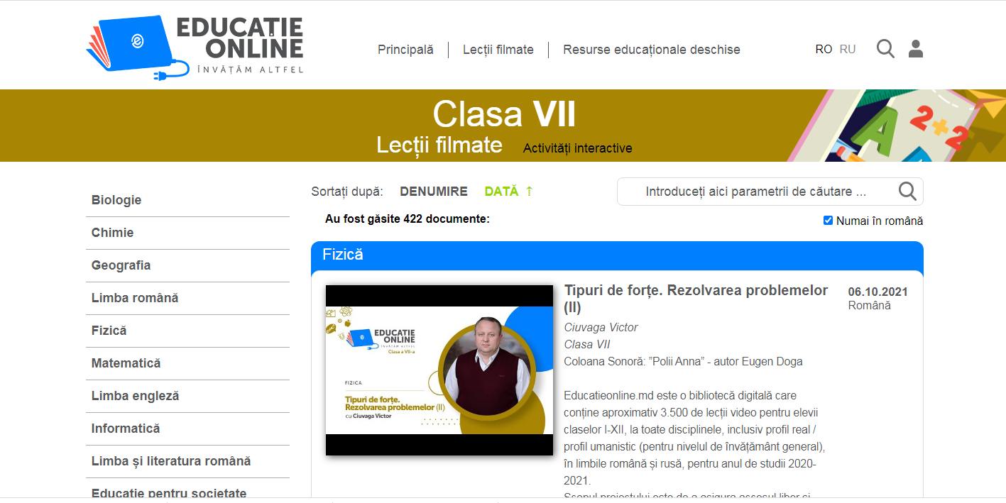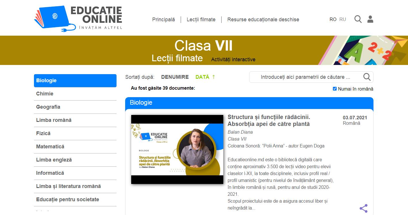 Dragi părinți cu elevi în Clasa a VII-a, Biblioteca digitală „Educație online” www.educatieonline.md vă vine în ajutor cu sute de lecții video și activități interactive pe care le puteți accesa direct de pe site-ul nostru, fără a vă crea un cont cu parolă.